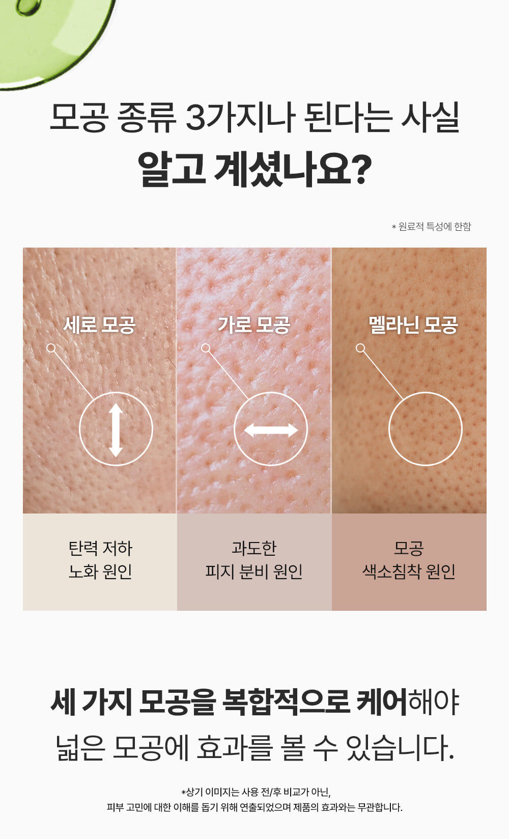 3種不同類型的毛孔問題: